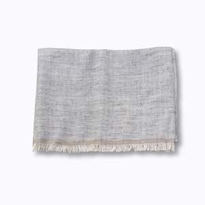 This handwoven Pashmina shawl embraces a simple, natural aesthetic. It features a beautiful texture that blends shades of grey and beige, with a single contrasting brown stripe along the bottom to highlight its authentic craftsmanship. - Grey and Beige - Handwoven - Size: 80 x 41 inches - Weight: 144 grams - 100% Pashmina - Dry clean only