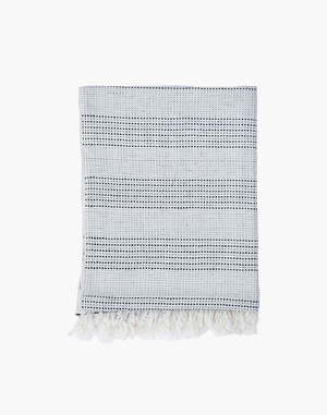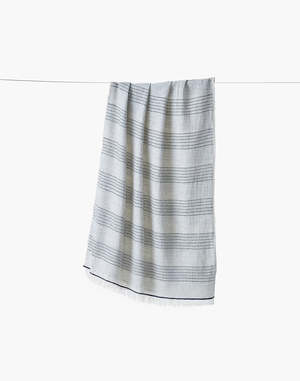 This hand-spun and handwoven Maheshwari stole in pure cotton showcases fine horizontal stripes and vertical bands in off-white and charcoal grey. Finished with delicate fringes and dyed using eco-friendly azo-free vat dyes, it is a stylish, lightweight, and sustainable accessory. - Ivory and blush pink - Handspun - Handwoven - Size: 24 x 78.7 inches - Conventional cotton with azo-free vat dye - Dry clean only