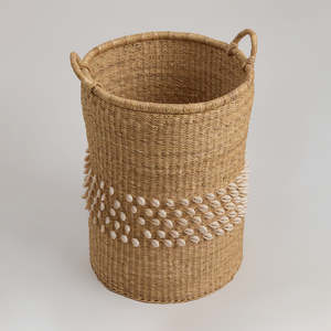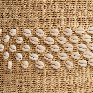 Color: Natural Size: Medium or Large 100% Elephant Grass & Cowrie Shells Made in Ghana Due to the handmade nature, baskets will vary slightly.
