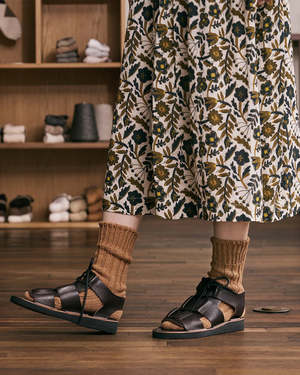These low-gauge socks with a classic texture are knitted on a vintage machine from Bentley, England. The socks are knitted slowly using plenty of yarn and have a gentle hand-knit feel. You can enjoy the different comfort that each cotton offers depending on the color of socks you choose. Gentle wash mode in a washing machine is recommended. For best results, turn socks inside out and wash in a laundry net. Hang in a well-ventilated place, out of direct sunlight. Main: 92% Organic Cotton, 7% Nylon, 1% Polyurethane Made in Japan Style No. 7-5002_BROWN Type: Socks