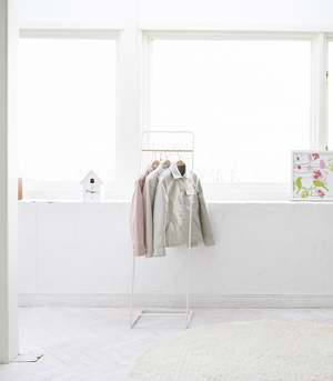 Impress your guests with this freestanding coat rack. Whether adding extra storage to a guest bedroom or standing pretty in an entryway, this minimalist coat rack will hold and store plenty of items and look good doing it. Dimensions: L 15.75 x W 15.75 x H 55.12 inches. Materials: Steel, Wood. Loadbearing weight: 11 lbs.