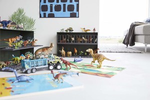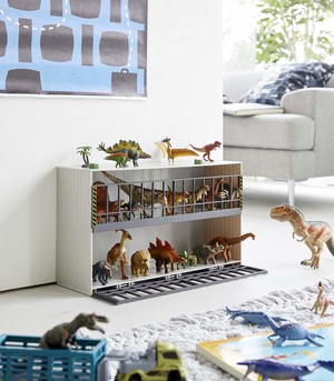Dino-mite storage for the playroom. Before time, there has been no better toy storage to have ever existed. Your kiddo will love the two-tiered cage-esque design which will keep their toy animals, dinosaurs, and the like at bay. More than just an organizer, this rack will become part of the story-telling experience during playtime. Watch your child have fun, while you enjoy a floor free from figurines. Win-win!