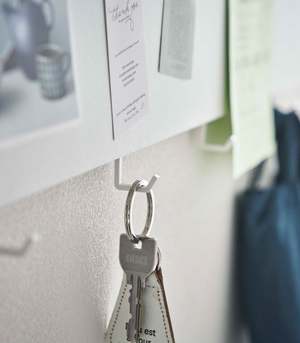 Keep your to-do lists, postcards, receipts, and other important papers secure and visible with this stylish magnetic panel. Designed for your entryway, workspace, or kitchen, it features four adjustable hooks for extra storage and a wide horizontal design to prevent items from overlapping. A hidden groove at the top provides a convenient spot to quickly stash your phone or favorite postcard. Made from durable steel, this wall-mounted organizer helps you stay organized while complementing your decor.