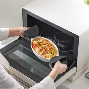 Protect your hands from hot pots and pans with these sleek silicone pot holders. Made of thick, insulating silicone, the pot holders keep your hands safe and provide a firm no-slip grip on high-temperature items. Conveniently store on any magnetic surface such as a range hood, kitchen panel, oven door, or refrigerator door for easy access. Dishwasher safe.