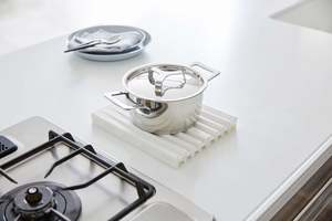 Use this clever kitchen accessory as an extra drainer tray, pot holder, or trivet. The gentle slope of this drainer tray trickles runoff water back into the sink. Set out dishes or vegetables to dry on a clean surface without sitting in a puddle of water. Thanks to its heat-resistant silicone design, you can also use this tray as a trivet for piping-hot pots and pans. Simply clean and fold to store away when not in use.