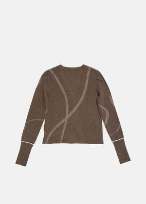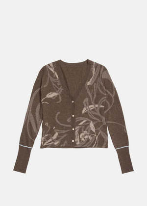 Floral-print buttoned cardigan in brown. Features a floral print, V-neck, button fastening, long sleeves, and ribbed cuffs. 100% Wool. Made in China.