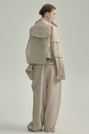 Yehuafan explores the quiet beauty of material and form. Each piece is crafted with a focus on texture, proportion, and the natural character of the fabric, resulting in a raw and refined look. Designed to age gracefully, Yehuafan pieces carry the marks of time and use, becoming more personal with every wear. Yehuafan Wool Linen Jacket in ivory with long sleeves. Two side pockets. Zip closure at front. Panelled throughout. Colour: Ivory Composition: Wool / Linen