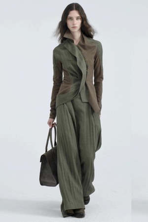 Yehuafan Linen Pants in Green. Asymmetrical design throughout. Wide leg. Soft textural linen fabric. Button closure at waist. Side pockets. Colour: Green. Composition: Linen. Code: C9000086