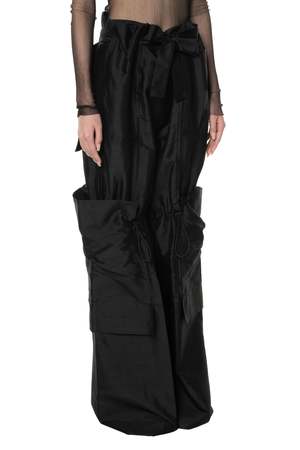 Linen and Silk Pants by YEHUAFAN. Wide leg, double layered, with asymmetric details throughout. Made from a soft textural linen silk fabric. Code: C9000089.
