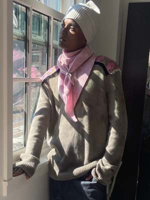 The Hirut crewneck sweater by Yesaet is crafted in zero waste 100% Scottish cashmere and seamlessly knit for a relaxed fit. Each piece is hand dyed in New York using carefully selected herbs and botanical dyes to create unique organic colors. The shoulders are embellished with hand loomed vintage Ethiopian jacquard patches, handcrafted by artisans. Details: - 2 ply 100% Scottish cashmere; lofty, airy, pill resistant - Medium yet lightweight feel - Seamless, fully fashioned construction - Hand dyed in NY with botanical ingredients - Hand loomed vintage jacquard patches at the shoulder - Relaxed fit - Size Guide: XS (size 0-2, Body length 26", Chest 21"), S/M (size 2-8, Body length 27", Chest 22"), M/L (size 10-12, Body length 29", Chest 24") - Made to order; 2-3 week lead time based on availability Content & Care: - 100% Cashmere - Turn inside out; gentle hand wash in cold water with mild detergent; do not rub - Do not bleach; lay flat to dry - Or dry clean Designed, knit, and hand dyed in New York.