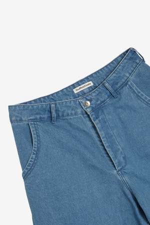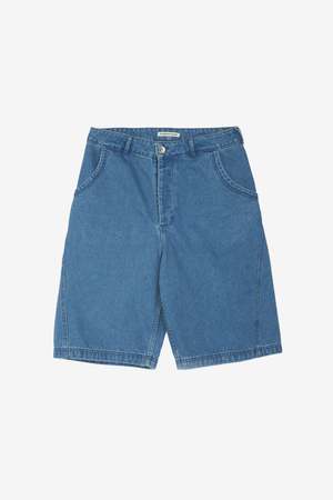 Twisted Short Shorts by YMC. Style code: U9AAA. Color: Indigo (Blue). Unisex shorts.