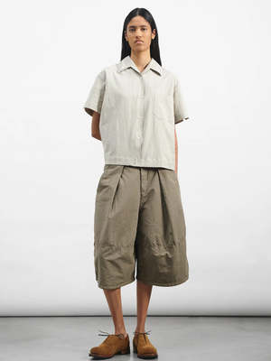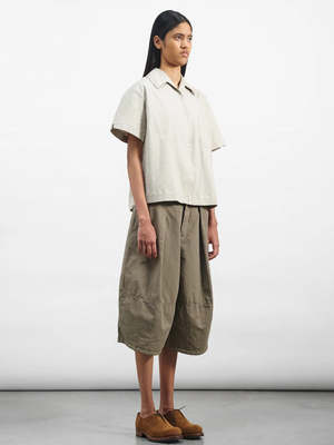 The Salba Shorts from YMC are wide cut, knee length, and crafted from a cotton and linen blend. The shorts have been garment dyed and feature an adjustable hem drawcord, angled side and back patch pockets, a corozo button waist fastening, and a YKK zip fly. Relaxed fit with a unisex cut.