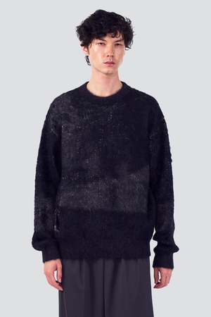 Black Abstract Jacquard Mohair Sweater from Yoke. Long sleeve soft sweater featuring an abstract design inspired by the works of Max Ernst. 27% Mohair / 26% Nylon / 17% Wool / 15% Cotton / 15% Acrylic. Type: Knitwear.