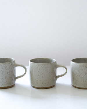 Handmade speckled stoneware mugs by Yuko Nishkawa strike a balance of form and utility. The sloped handle makes for a comfortable grip and adds an understated grace to your morning slow coffee ritual. SPECIFICATIONS 3 1/2" diameter (w/o handle) x 5" total width x 3" height MATERIAL Semi-gloss speckled glaze on stoneware CARE & USE Dishwasher safe ORIGIN Brooklyn, NY