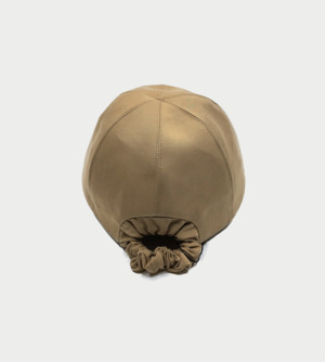 A light brown cap reimagined with a functional scrunchie-style opening at the back, designed to comfortably accommodate ponytails or buns. The gathered elastic detail creates both flexibility and a playful silhouette, blending practicality with a feminine touch. Crafted with smooth panels and clean stitching lines, the structured crown maintains a classic baseball cap shape, while the subtle embellishment at the front adds a delicate accent. The adjustable back ensures a secure and comfortable fit. A versatile everyday accessory that combines sporty structure with romantic detail. Vendor Style: 26189BRN00NN Materials: Brass plated 18k Gold, Polyester. Imported.
