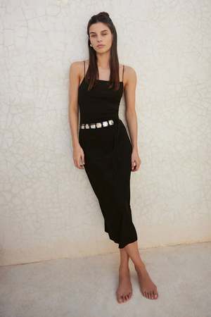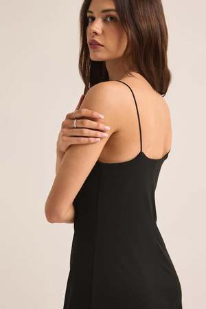 Meet your new favorite midi dress that can effortlessly go from casual to chic with some accessorizing. Fully lined with adjustable spaghetti straps, you'll love the buttery smooth feel of this fabric with its irresistible softness. Materials - So Smooth Jersey: 80% Nylon, 20% Spandex Care - Heavy soft wash - Machine Wash Cold, Delicate Wash, Lay Flat to Dry Sizing - Model is 58 wearing size S. - Bust: 36.4in Waist: 28in Hips: 42in