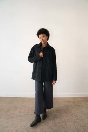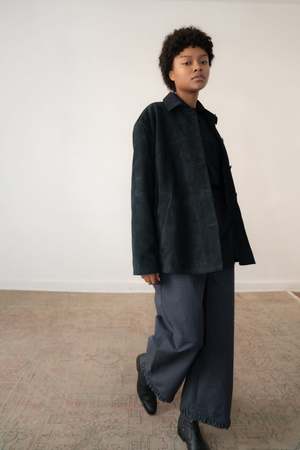 The EDHA is a classic leather jacket with a masculine edge, tailored with precision for a clean, structured fit. Crafted in supple leather with side pockets and a sharp collar, its a timeless piece that speaks to refinement and understated luxury. 100% Sheep Leather 100% Polyester lining Made in Mexico Model is 5'7 and wears size S. Final Sale.