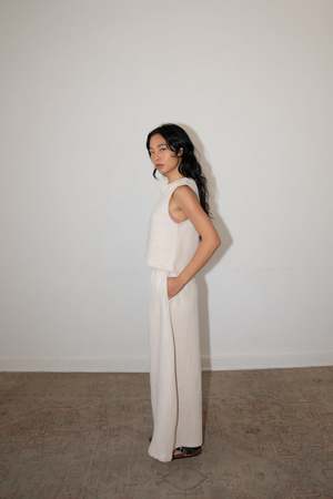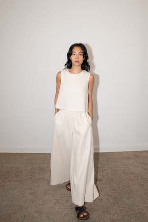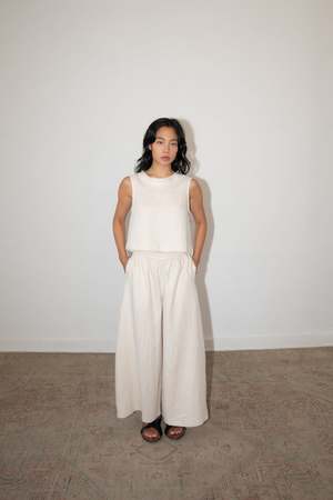 The KONO pant, from our CLASSICS Collection, is a wide-leg, tulip shaped bottom. Made from a heavier linen, the KONO pant drapes beautifully and allows for full movement with its relaxed fit and elastic band. - 100% Linen - Side pockets - Cropped - Model is wearing Size XS and is 5'10 - Made in Mexico