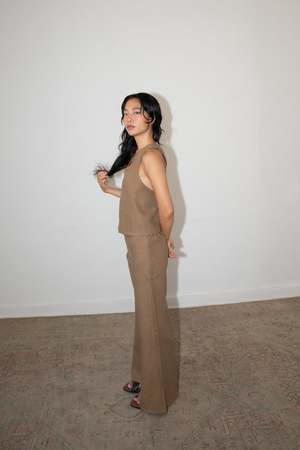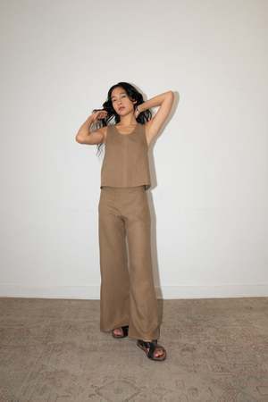 The LORA pant, from our CLASSICS Collection, is ZII ROPA's slimmer linen pant with a kick flare made with medium-weight linen. With a contour waistband in the front and elastic band in the back, the LORA pant offers a feminine, comfortable fit. - 100% Linen (medium-weight) - Mid-rise - Concealed side zipper - Model is wearing size S and is 5'7" - Made in Mexico Care Instructions: - Machine wash cold - Gentle cycle - Hand wash cold - Dry flat - Do not bleach - Warm iron inside out - Dry clean Measurements: Size XS: Waist 29" | Hip 34" | Rise 8.8" | Sideseam 39.8" Size S: Waist 30" | Hip 35" | Rise 8.12" | Sideseam 39.8" Size M: Waist 31" | Hip 36" | Rise 9" | Sideseam 39.8" Size L: Waist 32" | Hip 37" | Rise 9.4" | Sideseam 39.8" Final Sale.