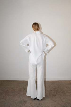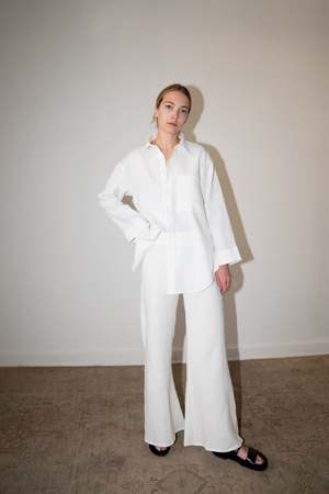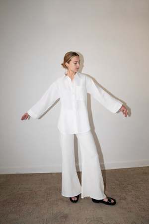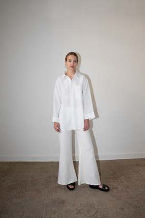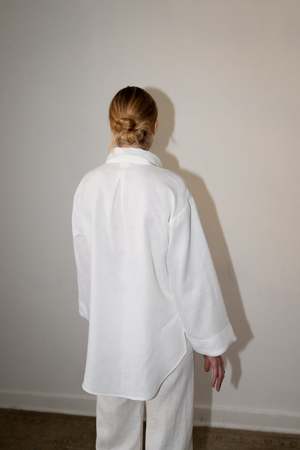 The LUC is a classic button-down overSized shirt with side slits, one breast pocket, and cropped bell sleeves. - 100% Linen (light-weight) - Button Closure - Model is wearing Size S and is 5'10 - Made in Mexico Short description The LUC is a classic button-down oversized shirt with side slits, one breast pocket, and cropped bell sleeves. - 100% Linen (light-weight) - Button Closure - Model is wearing size S and is 5'10 - Made in Mexico Measurements Size XS: Bust 38\" | Waist 40\" | Sleeve 19.8\" | Length 30\" Size S: Bust 40\" | Waist 42\" | Sleeve 19.8\" | Length 30\" Size M: Bust 42\" | Waist 44\" | Sleeve 19.8\" | Length 30\" Size L: Bust 44\" | Waist 46\" | Sleeve 19.8\" | Length 30\" Care instructions Machine wash cold Gentle cycle Hand wash cold Dry flat Do not bleach Warm iron inside out Dry Clean
