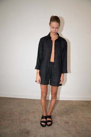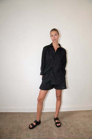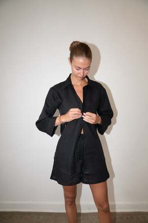 The LUC is a classic button-down oversized shirt with side slits, one breast pocket, and cropped bell sleeves. - 100% Linen (light-weight) - Button Closure - Model is wearing Size S and is 5'9 - Made in Mexico
