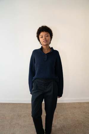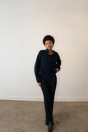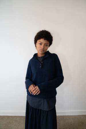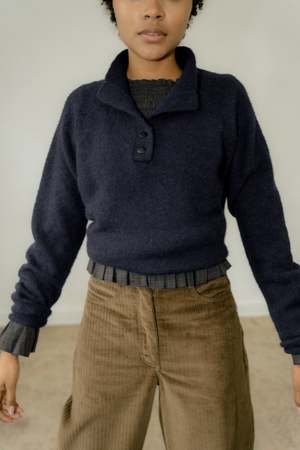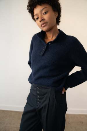From the LILAH Collection, the MERE is knit in Peru from baby alpaca, super kid mohair, and mulberry silka blend chosen for its warmth, softness, and subtle sheen. Designed with a half-button placket and straight fit, it balances ease with structure. 54% Baby Alpaca, 22% Super Kid Mohair, 24% Mulberry Silk Knit in Peru. Model is 5'7 and wears size M (typically an XS). Care instructions: Dry Clean Only. Final Sale.