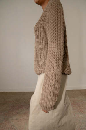 Knit in Peru from soft cotton yarn, the Rio Sweater is defined by its wide, open-gauge fisherman stitch, giving it an airy, dimensional feel. Its relaxed silhouette and elongated sleeves create an easy, effortless shape. - 100% Cotton - Model is wearing size S and is 5'7 - Made in Peru Final Sale.