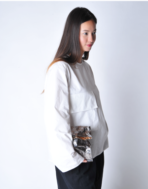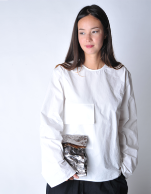 Handmade in coated metallic foil, the lunch bag style is a versatile piece that can be used as a clutch or a bag within a bag. Clean, modern, and malleable. Light as a feather. Handmade in Italy in small quantities 11" H x 8" W x 3" D Comes with dust bag