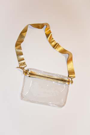 The clear stadium hip bag is an innovative accessory that allows you to bring belongings into the stadium without sacrificing convenience and style. Constructed with durable, clear vinyl and trimmed with premium leather, this stadium bag features a customizable design and a comfortable leather strap for easy carrying. - 20 gauge marine quality vinyl - Gold-toned metal zipper - Leather adjustable strap - Gussetted silhouette, unlined - Small matching zipper pull - Size: 11"x8"x1" - Made in the United States - FINAL SALE