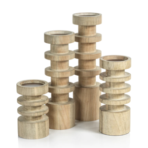 Le Salama Carved Mango Wood Pillar Candle Holder Dimensions: 4.5 in x 13 in
