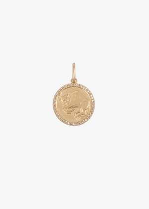 The Taurus Charm by Zofia Day is crafted from solid 14K gold and features pave diamonds around the outer edge. Total diamond weight: 0.14 carats.