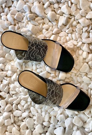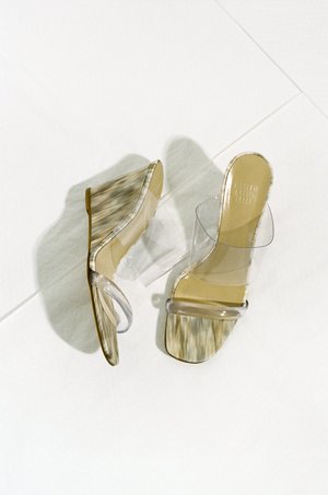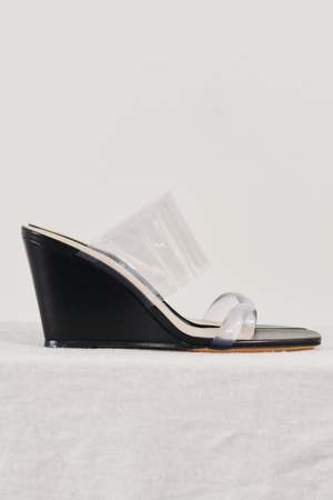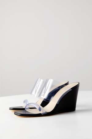 By Maryam Nassir Zadeh. High wedges with two clear perspex bands in the perfect shell embossed leather. 8cm heel. 90% Leather, 10% Perspex 100% leather Made in Italy Sizing: Italian
