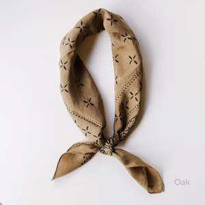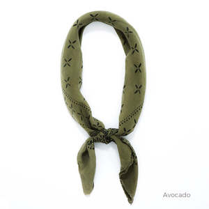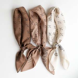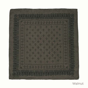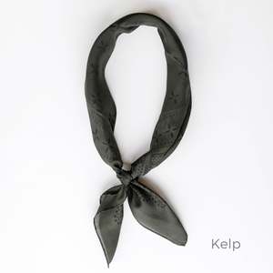 Inspired by vintage American-made cotton bandanas, a hand-rolled hem version continues the tradition of form and function but offers a softer approach in powdery washed silk. All scarves are hand-printed and dyed in Los Angeles. Any variations in the printing process are natural to this method and enhance their beauty. Scarf measures 29" by 29". 100% Silk Hand wash cold, line dry or dry clean. Hand made in California.